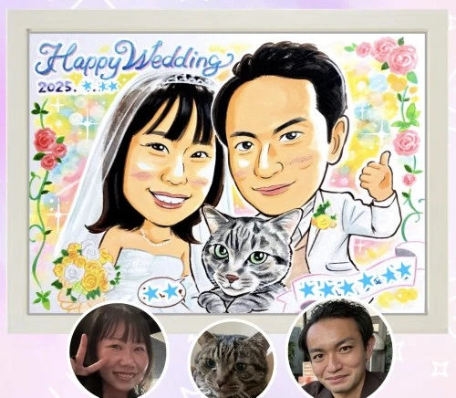 数多くの似顔絵を描く方がいらっしゃる中、浜田さんにお願いしてよかったと思います。ありがとうございました!家に飾ります。